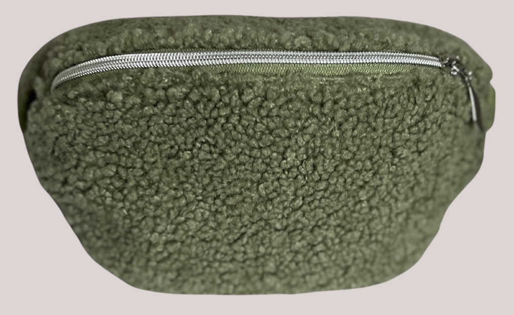 Schöne Bauchtasche aus einem Fell-Imitat (Teddystoff) in der Farbe grün und in den Abmessungen 25*8,5*14cm (B*T*H). Ein Gurt ist natürlich dabei.