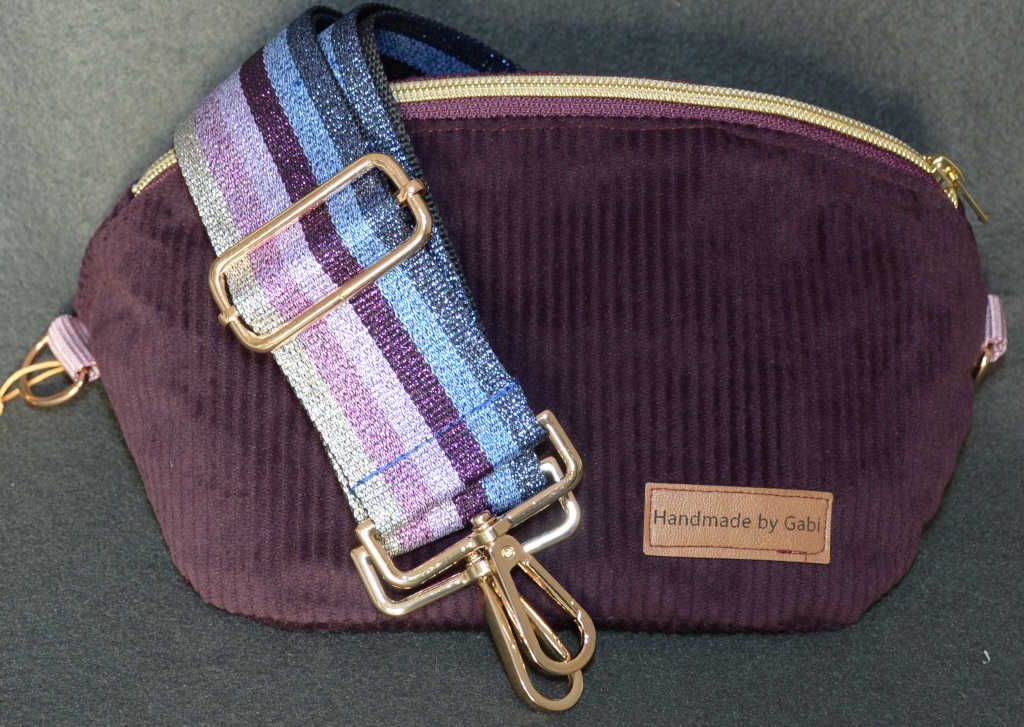 Schöne Bauchtasche aus Cord in der schönen Farbe Brombeere mit den Maßen 25*8,5*14cm (B*T*H).