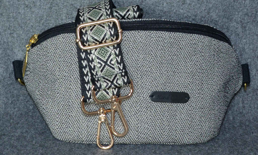 Schöne Bauchtasche aus strapazierfähigem Stoff (graumeliert) schwarzem Cord in der Größe 27*7*13cm (B*T*H). Ein Gurt ist natürlich dabei.