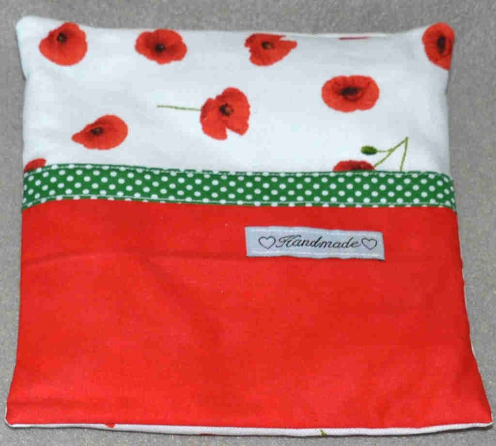 Das Getreidekissen ist etwa 19*18cm groß und wiegt ca. 350 Gramm.