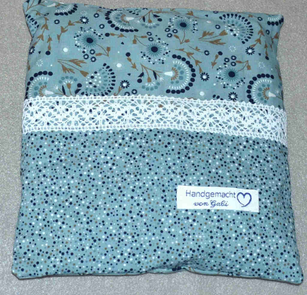 Das Getreidekissen ist etwa 19*18cm groß und wiegt ca. 350 Gramm.