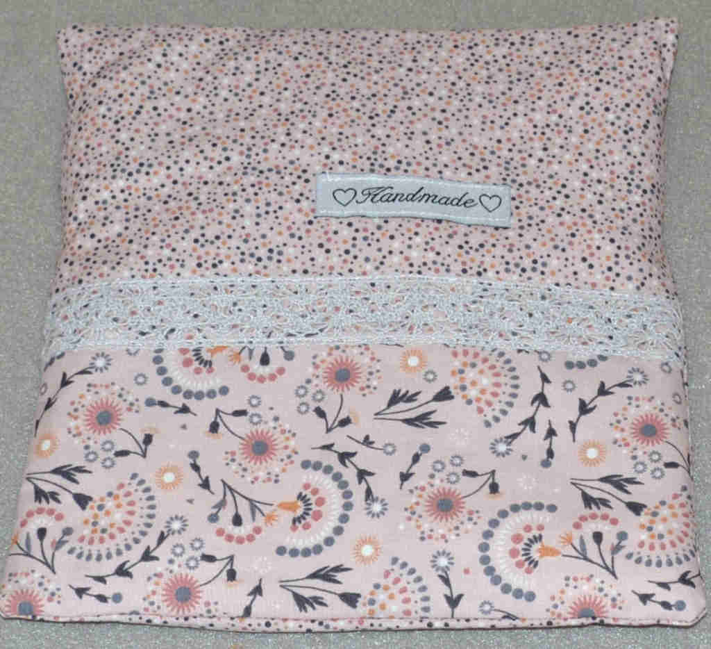 Das Getreidekissen ist etwa 19*18cm groß und wiegt ca. 350 Gramm.
