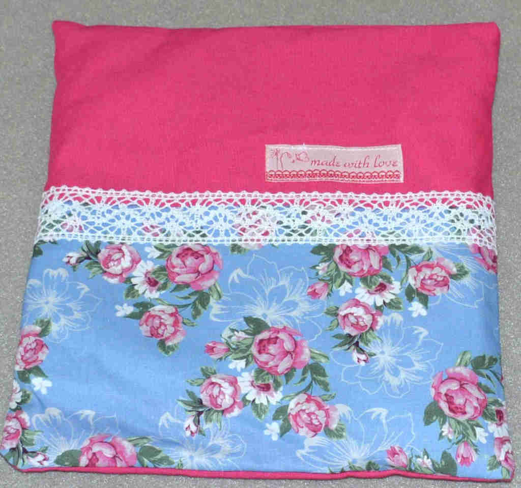 Das Getreidekissen ist etwa 19*18cm groß und wiegt ca. 350 Gramm.