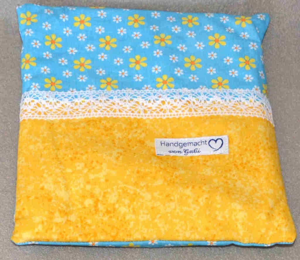 Das Getreidekissen ist etwa 19*18cm groß und wiegt ca. 350 Gramm.