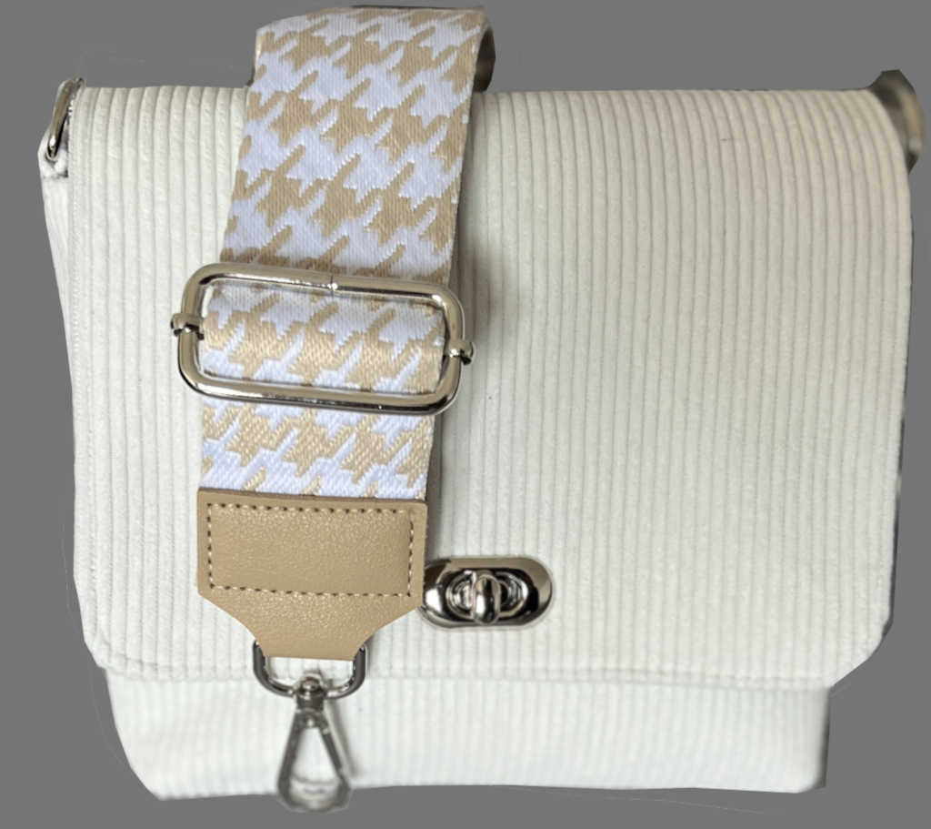 Schöne Handtasche aus weißem Cord nach dem Modell „Holly“. Passende Stücke finden Sie unter „219“