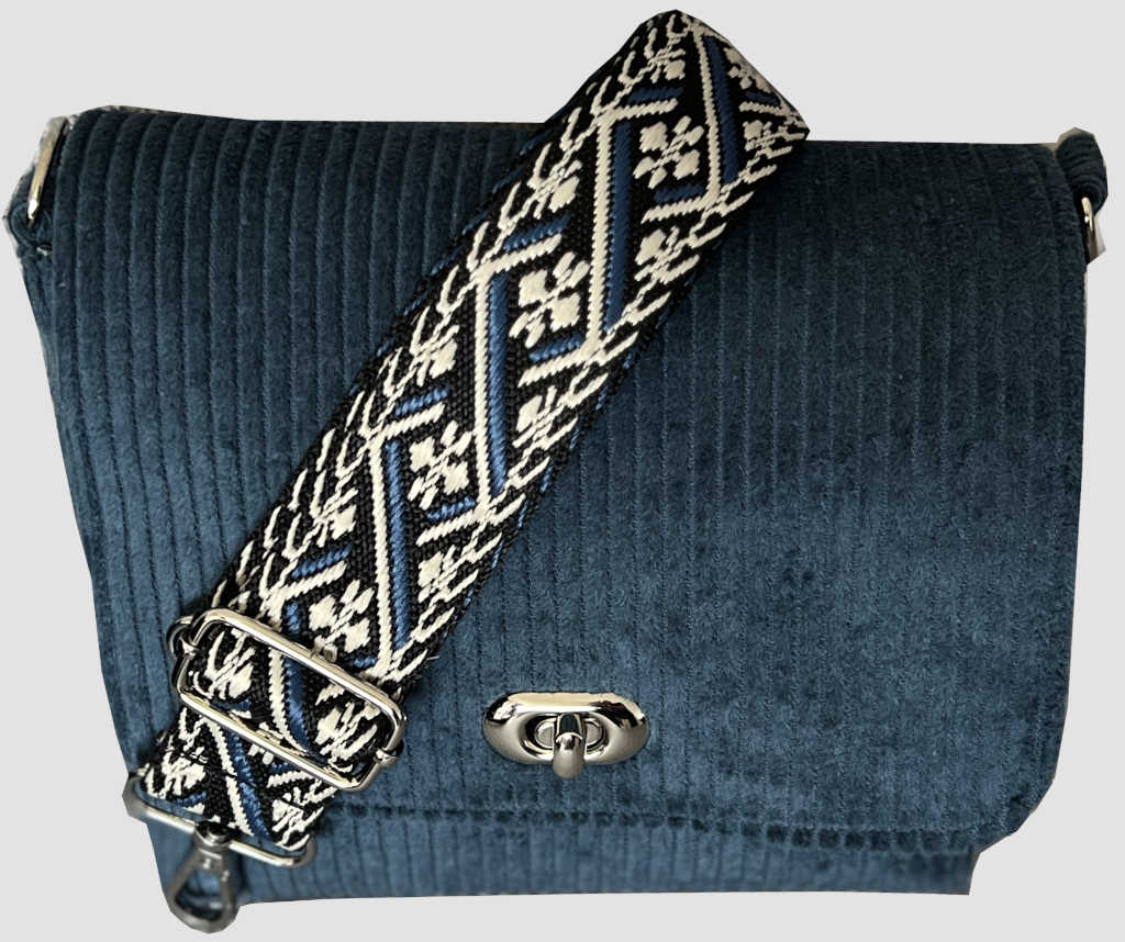 Schöne Handtasche aus blauem Cord nach dem Modell „Holly“. Passende Stücke finden Sie unter „236“