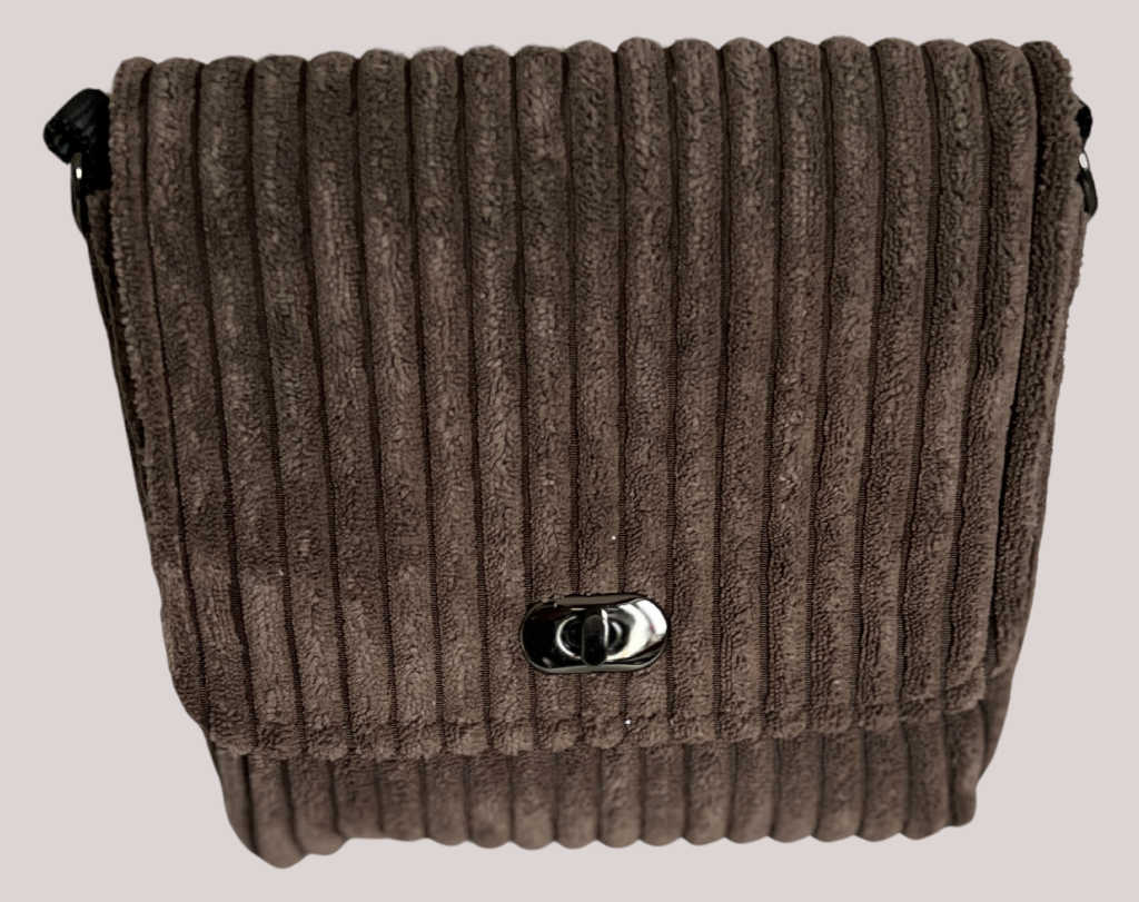 Schöne Handtasche aus braunem (breiten) Cord nach dem Modell „Holly“. Passende Stücke finden Sie unter „271“