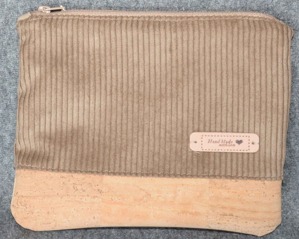 Schöne Kulturtasche aus Cord und Kork. Passende Stücke finden Sie unter „702“.