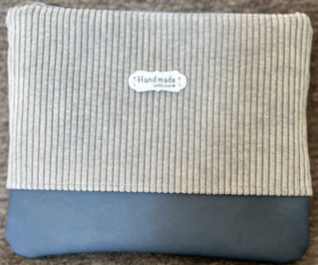Kosmetiktasche aus Cord und Kunstleder in schönen Blautönen (blau-grau/mittelblau). Passende Stücke finden Sie unter „724“. Achten Sie auch auf die Sets zum Sonderpreis.