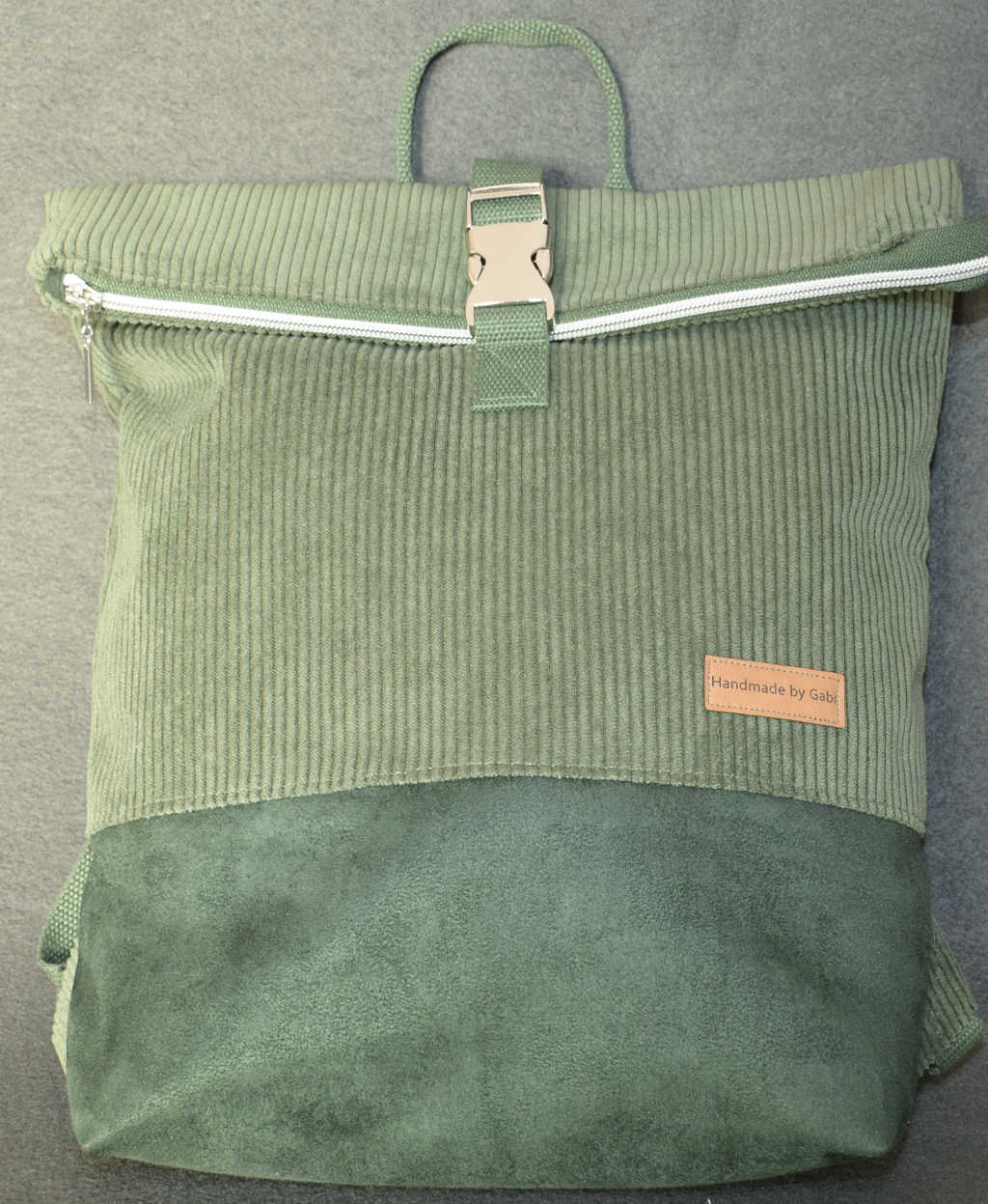 Schöner Rucksack im Modell „Romy“ aus Cord und Velourleder in schönem dunkelgrün.