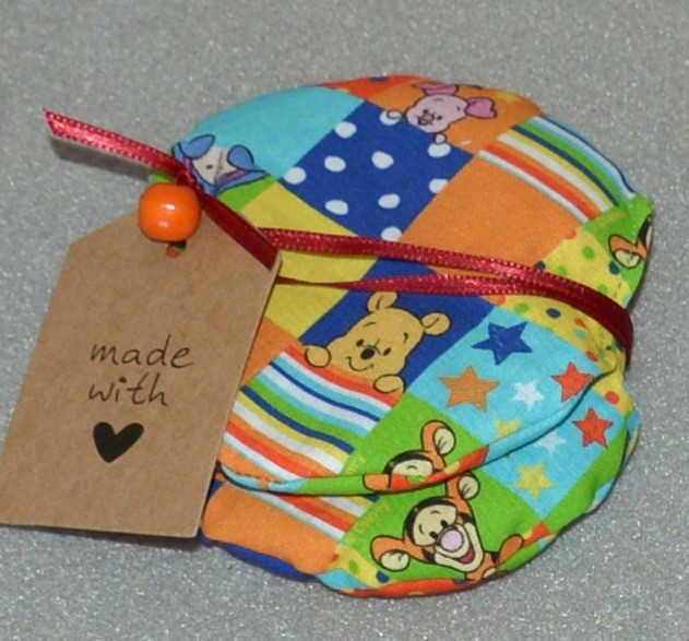 Diese Taschenwärmer (ein Paar) im Design für Kinder  sind rund (ca. 8,5 cm Durchmesser) und haben eine Getreidefüllung (Roggen, ca. 40 Gr. je Stück).