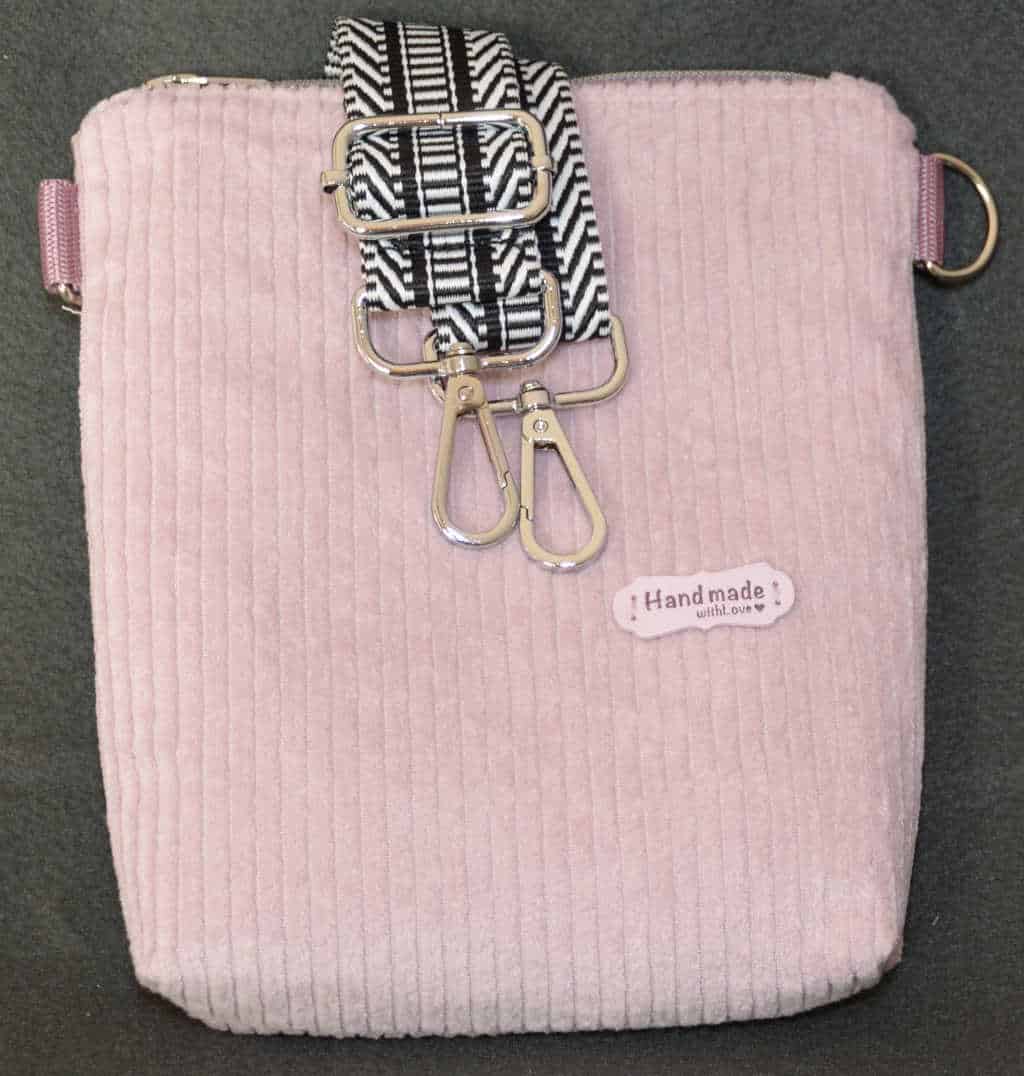 Umhängetasche aus Cord in rosa, die am Gurt über die Schulter oder auch Cross-Body getragen werden kann. Diese Tasche ist im Hochformat gearbeitet. Sie ist etwa 18*22 cm (B*H) und 4cm tief. Und ein Gurt ist natürlich dabei. Diese Tasche gibt es auch im Querformat (suchen Sie nach 212).